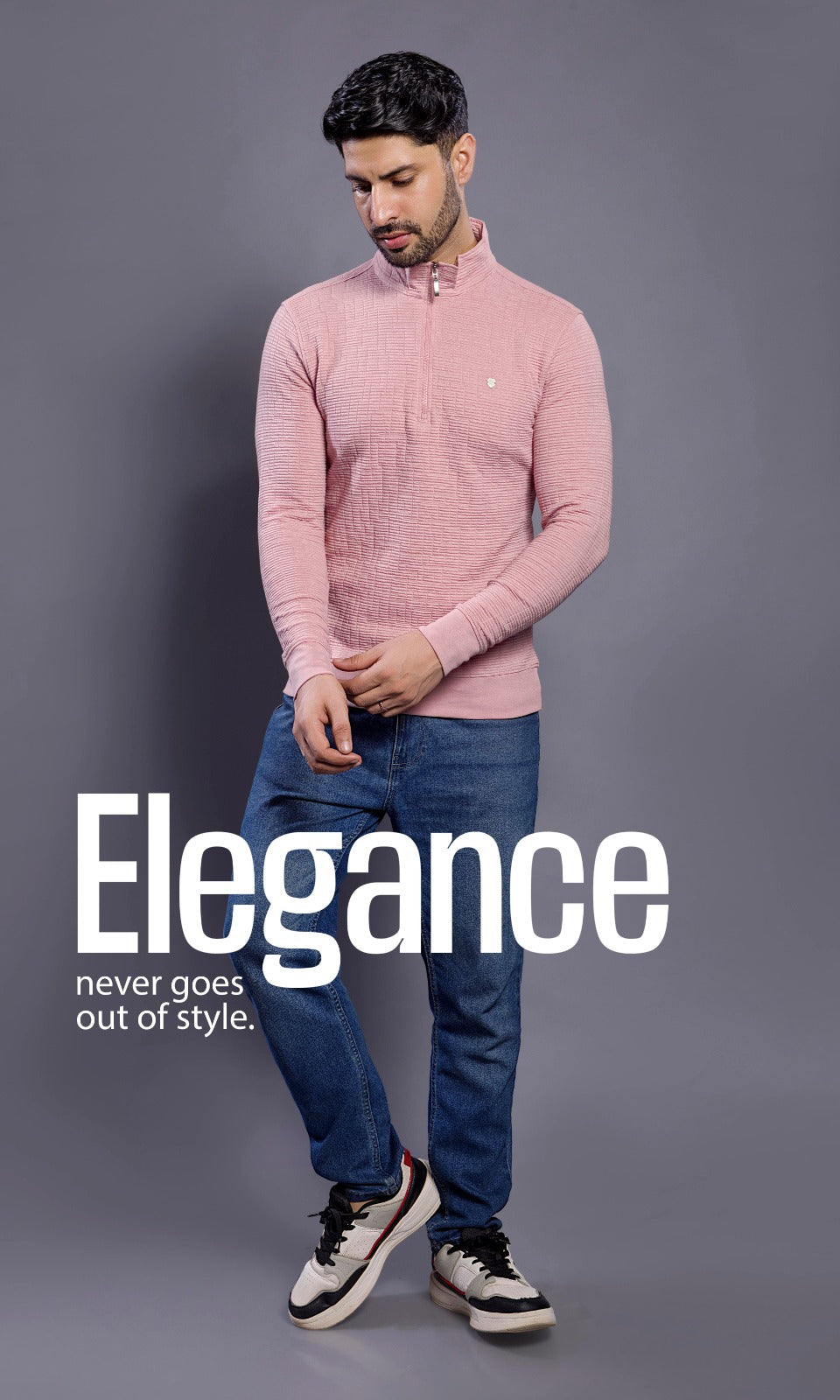 Upgrade your casual wardrobe with this men’s full-sleeve half-zip pullover. Designed with a stylish stand collar and a sleek zip-up neckline, it offers both comfort and a modern look. The textured fabric pattern adds a premium touch, making it perfect for everyday wear, casual outings, or layering in cooler weather.